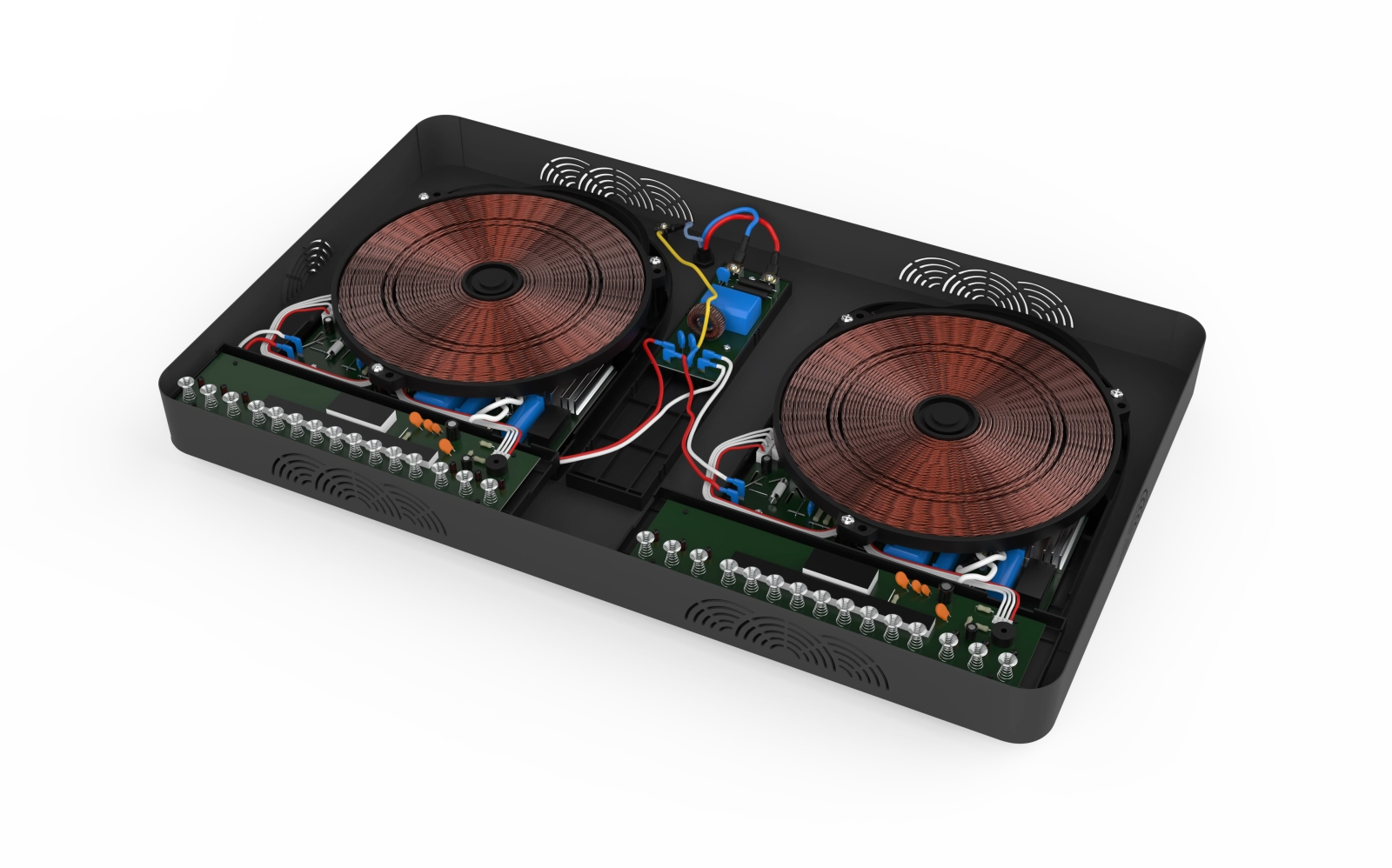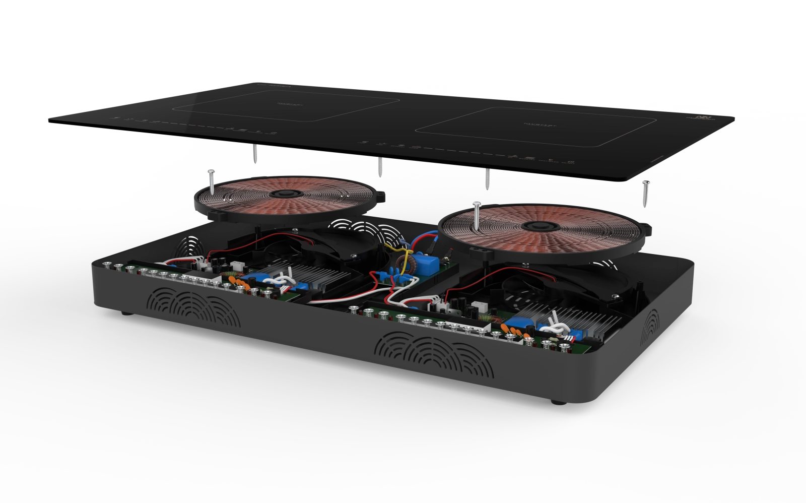 Lớp sơn tĩnh điện không chỉ nâng cao độ bền cho khung vỏ mà còn đóng vai trò như một lớp cách điện an toàn, giúp bếp vận hành ổn định và giảm thiểu rủi ro trong quá trình sử dụng lâu dài. Thiết kế khung vỏ cứng cáp, hoàn thiện tỉ mỉ góp phần gia tăng tuổi thọ sản phẩm và mang lại sự an tâm tối đa cho người dùng.