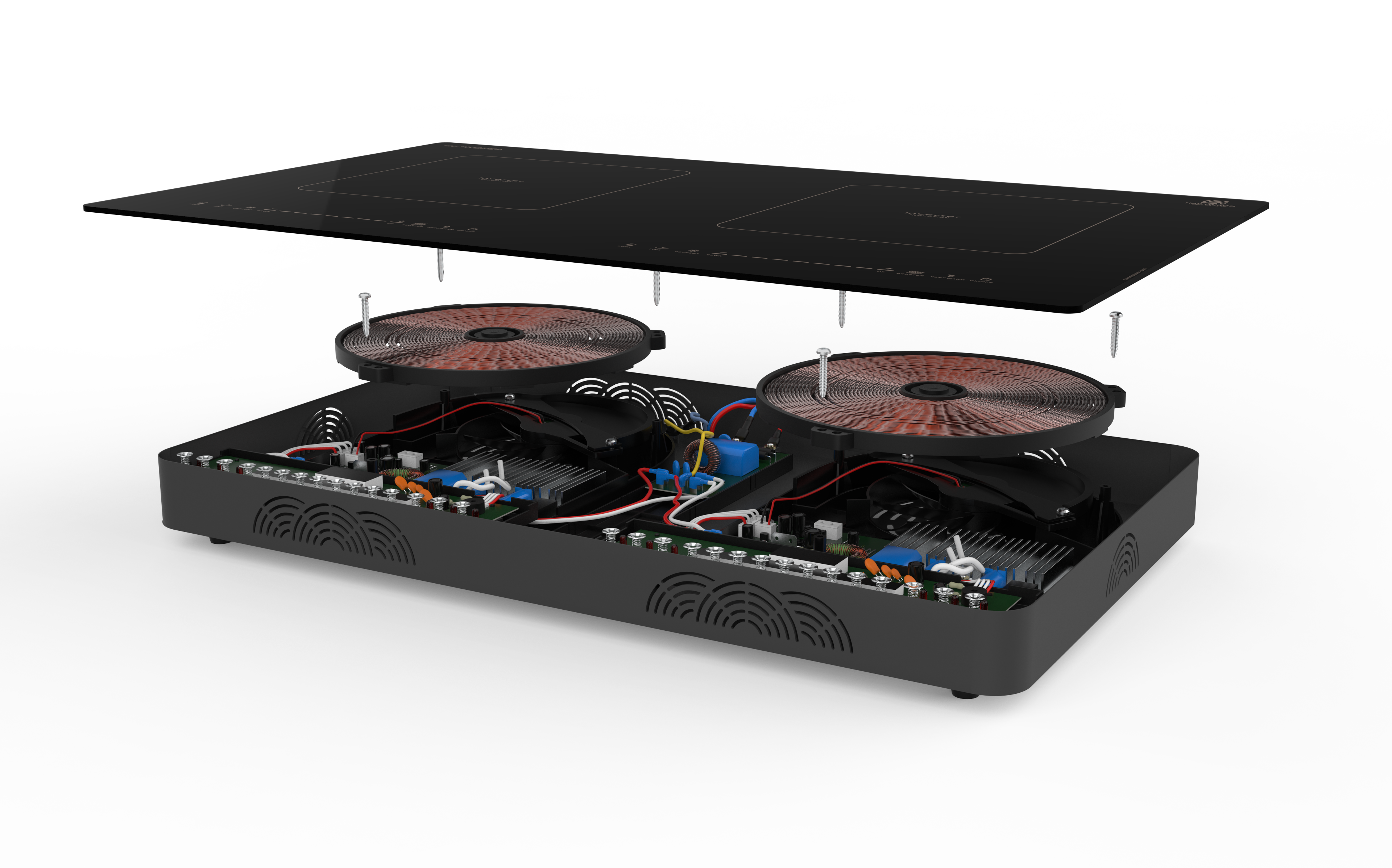 Bếp từ đôi Hawonkoo CEH-250 Inverter được trang bị khung đáy bằng hợp kim thép chắc chắn, kết hợp lớp sơn phủ tĩnh điện cao cấp giúp chống oxy hóa, hạn chế bám bẩn và bảo vệ linh kiện bên trong trước tác động của môi trường.