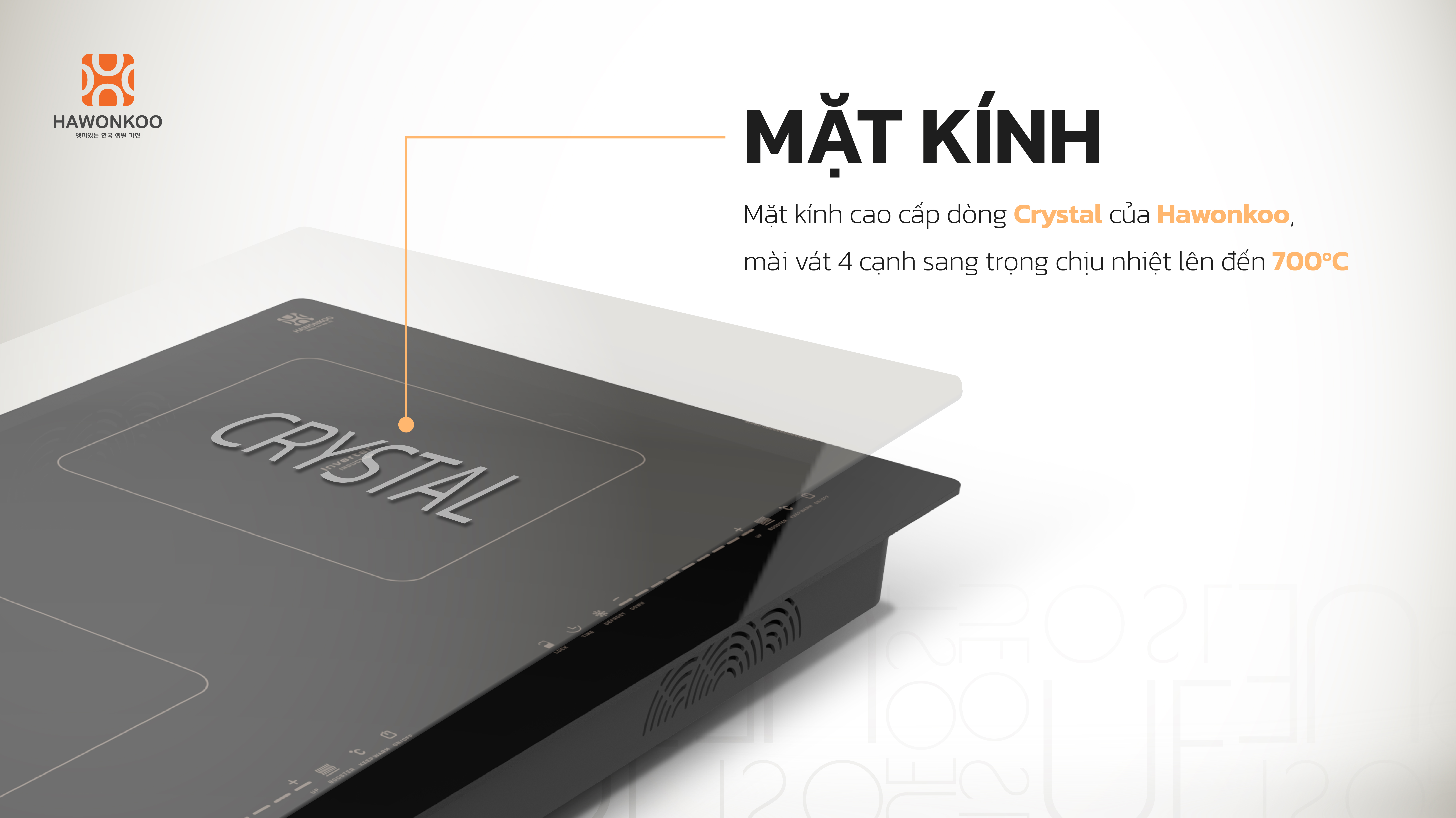 Bếp từ đôi Hawonkoo CEH-250 Inverter sử dụng mặt kính Crystal cao cấp độc quyền của Hawonkoo, được thiết kế để đáp ứng cả yêu cầu về thẩm mỹ lẫn độ bền trong quá trình sử dụng lâu dài. Mặt kính có khả năng chịu lực, chịu nhiệt tốt, hạn chế trầy xước, giúp bếp luôn giữ được vẻ sáng đẹp theo thời gian.