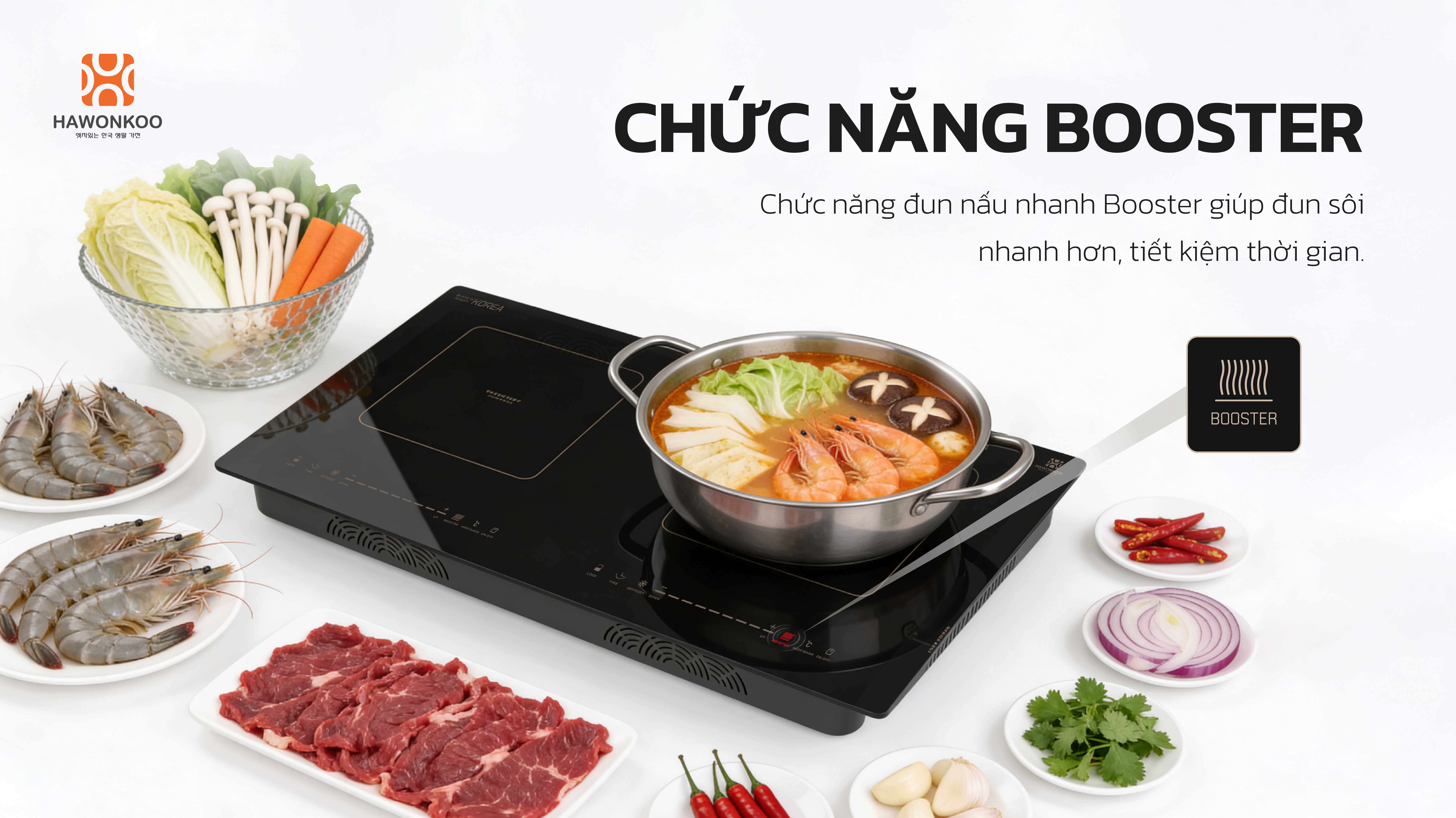 Booster hỗ trợ rút ngắn thời gian nấu nướng mà vẫn đảm bảo hiệu quả và độ ổn định nhờ sự kết hợp với công nghệ Inverter, giúp bếp vận hành mạnh mẽ nhưng vẫn kiểm soát tốt điện năng tiêu thụ. Nhờ đó, người dùng vừa tiết kiệm thời gian, vừa nâng cao trải nghiệm nấu ăn tiện lợi mỗi ngày.