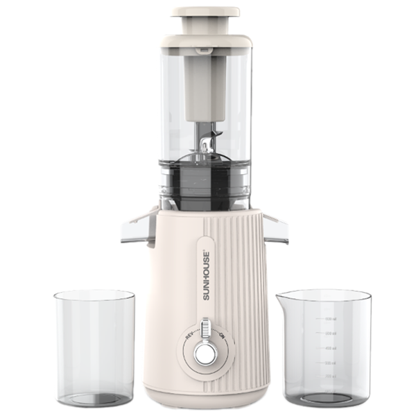 Máy dùng trục xoắn cỡ lớn, tự động kéo thực phẩm xuống nghiền mà bạn không cần phải dùng cây nhồi ấn mạnh. Công suất 200W giúp máy chạy đầm chắc, xử lý tốt cả những loại quả nhiều xơ.
