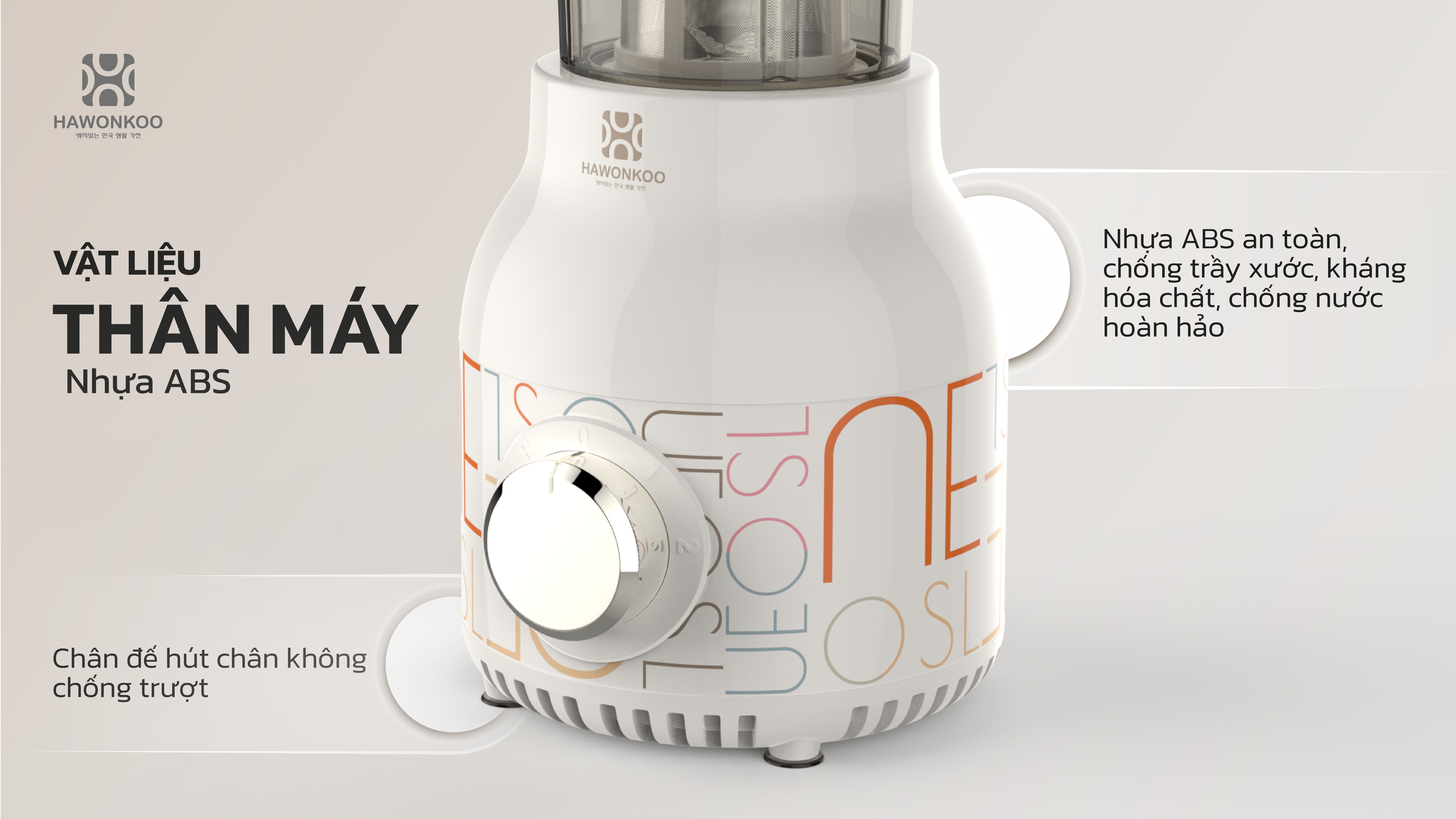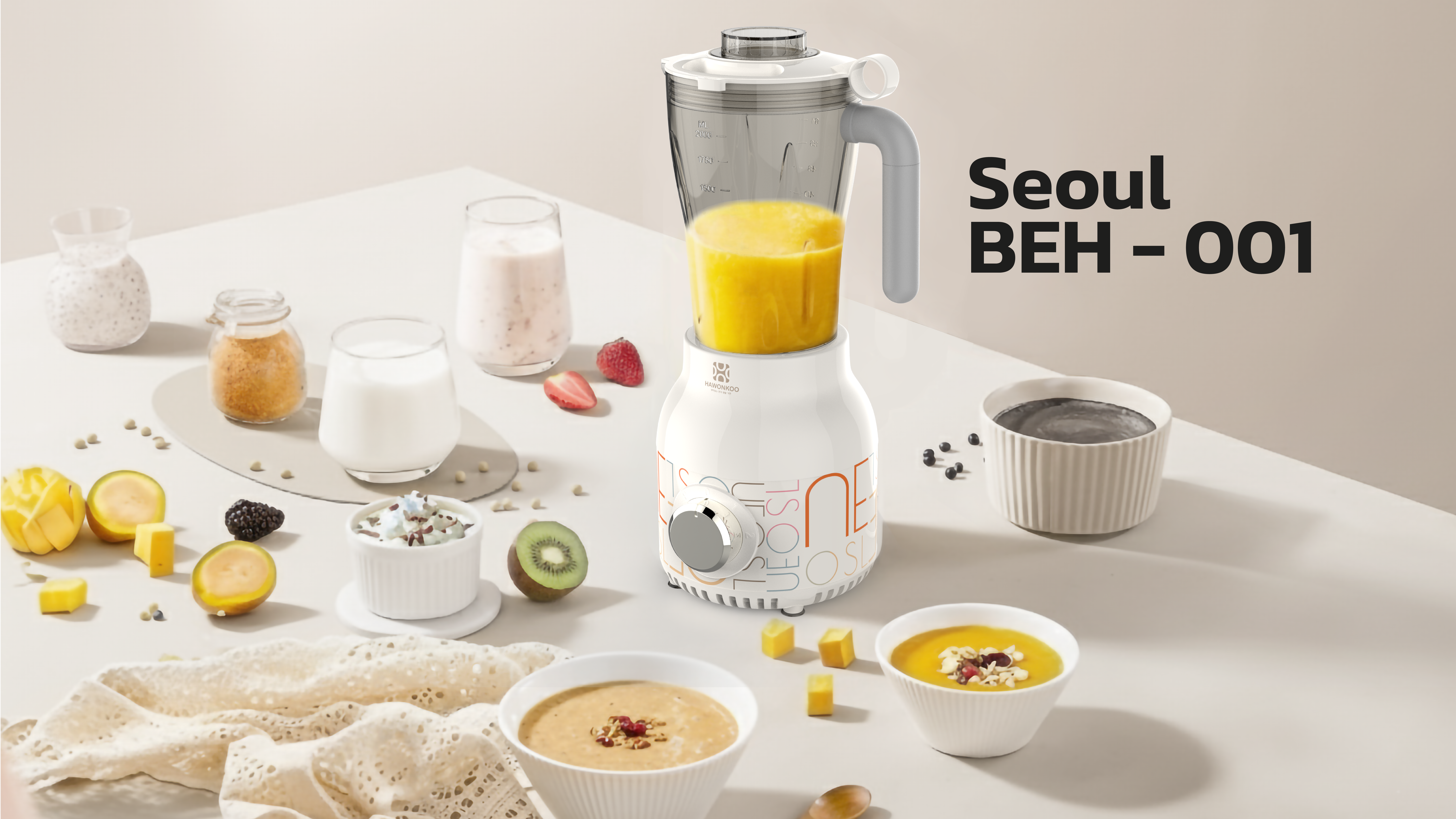 Máy xay đa năng Hawonkoo Seoul BEH-001 thuộc Seoul Collection, sở hữu thiết kế tinh gọn, hiện đại với thân máy bằng nhựa ABS bọc inox sang trọng, chống trầy xước và dễ vệ sinh. Kiểu dáng chắc chắn, kích thước tối ưu giúp tiết kiệm không gian bếp. Chân đế hút chân không chống trượt, giảm rung lắc khi vận hành. Tông màu thanh lịch kết hợp đường nét tối giản, phù hợp với nhiều phong cách bếp gia đình hiện đại.