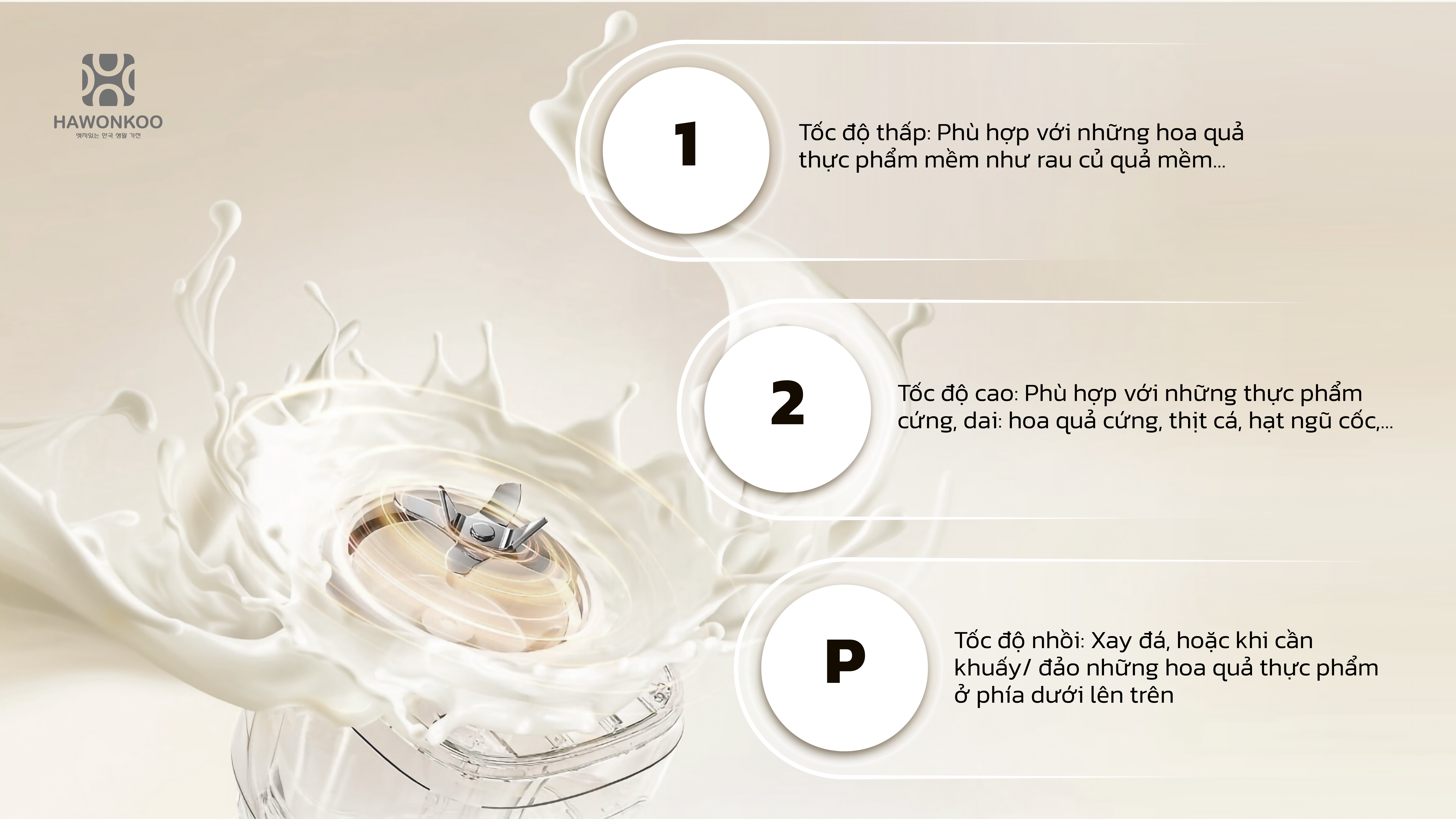 - Tốc độ thấp phù hợp với rau củ, trái cây mềm, giúp xay mịn nhẹ nhàng.