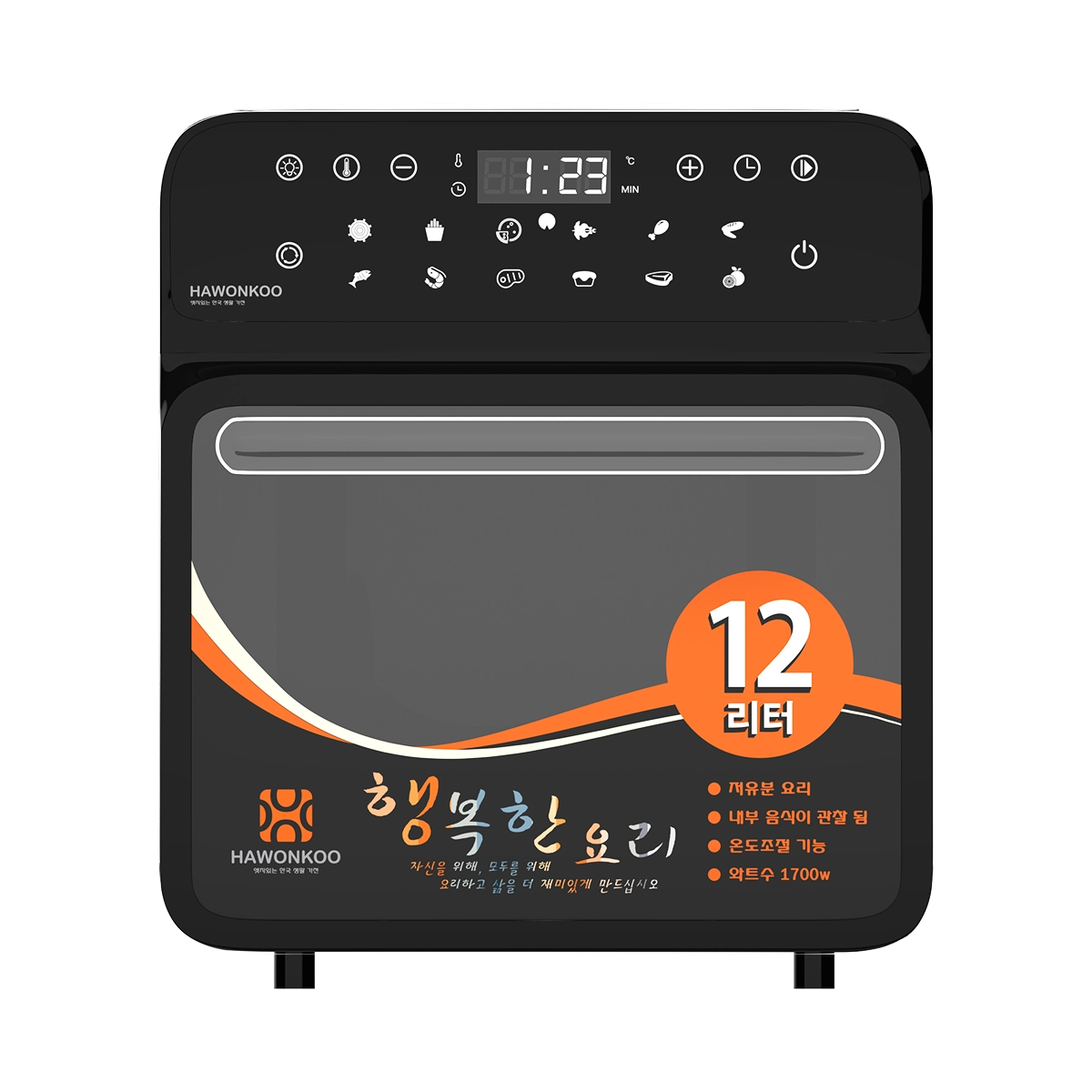 Hawonkoo AFH-120 được tích hợp 12 chương trình nấu mặc định đã được thiết lập sẵn nhiệt độ và thời gian bao gồm chiên nướng thông thường, khoai tây chiên, pizza, gà nguyên con, đùi gà, cánh gà, thịt, cá, tôm, làm bánh, beef steak, hâm nóng/ rã đông.