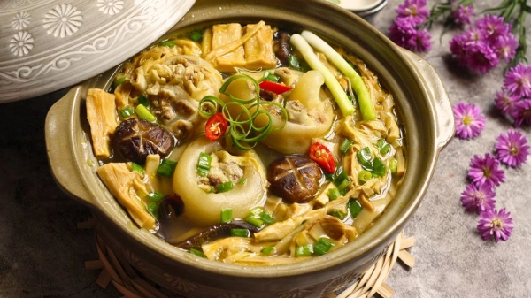 Móng giò hầm măng là món ăn truyền thống của các gia đình miền Bắc vào mỗi dịp Tết đến xuân về. Thịt chân giò được hầm mềm tan kết hợp phần măng giòn sần sật cùng nước dùng ngọt thanh khiến bữa cơm trở nên ngon miệng hơn bao giờ hết.